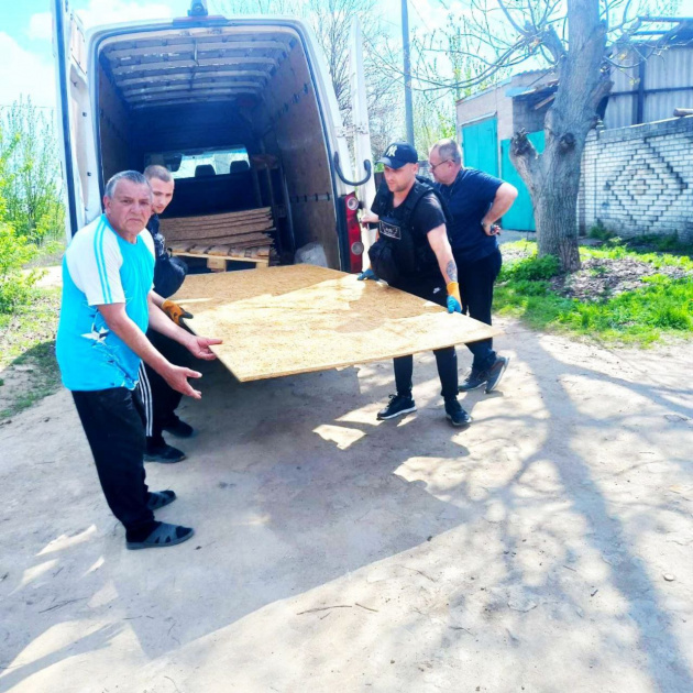 Благодійний фонд «Янголи спасіння» доставив перші набори для термінового ремонту: плівку, OSB-листи, рейки, дошки — усе, що потрібно для закриття пошкоджених вікон і дахів.