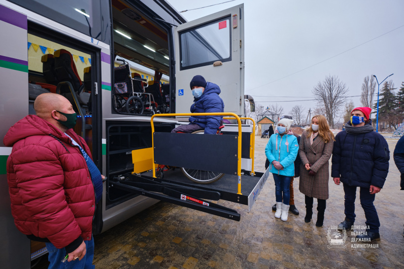 19 декабря в День Святого Николая председатель ДонОГА Павел Кириленко посетил Дружковский детский дом-интернат для передачи учреждению ключей от нового автобуса. Автобус изготовлен по индивидуальному заказу и оснащен гидравлическим лифтом, что делает его удобным для пользования лицами с инвалидностью.