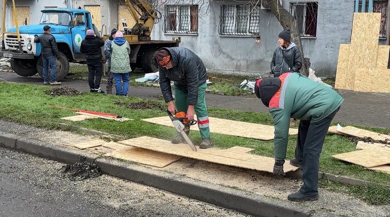 Вранці у понеділок містяни забивали пошкоджені вікна дошками, вигрібали скло.