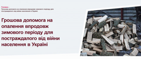Програма спрямована на підтримку малозабезпечених осіб та домогосподарств із соціально-економічною вразливістю, які наразі проживають у прифронтових або інших зонах, постраждалих від війни, у Донецькій, Харківській, Херсонській, Луганській та Запорізькій областях. Допомога призначена для придбання твердого палива або оплати послуг з опалення.
