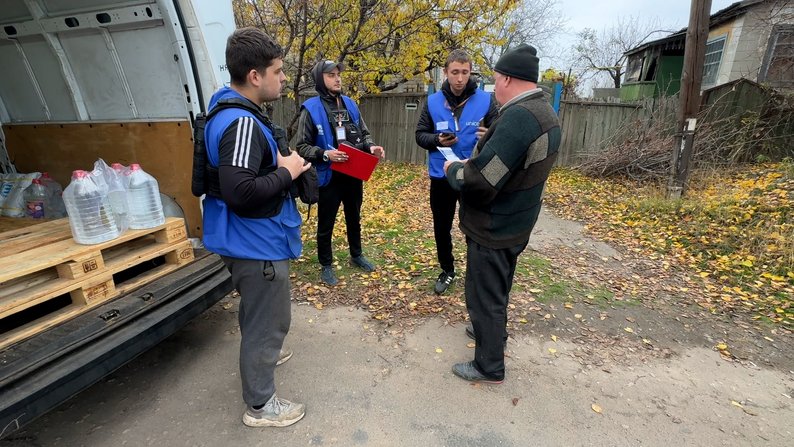 "Як ми працюємо: десь прилетіло — машина їде. Потім люди, які не встигли, можуть звернутись на "гарячу лінію", як сьогодні й відбувається. І ми привозимо їм матеріали адресно. OSB, пластикова плівка, дощечки, брезент, якщо у когось побитий дах. Оцінюємо руйнування та видаємо", — пояснює Сергій Старченко.